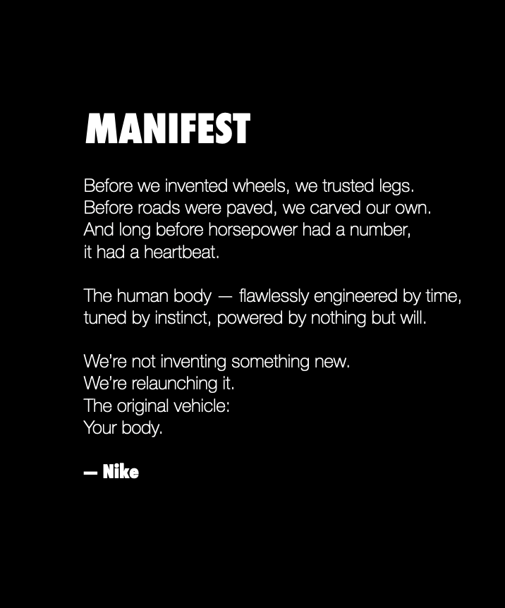 So, as Nike Training relaunches, we relaunch the original mode of transportation: the human body.